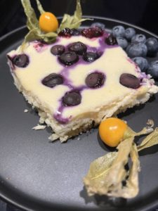 Wir haben heute ein einfaches Rezept für einen Quark-Kuchen mit Blauberren.
